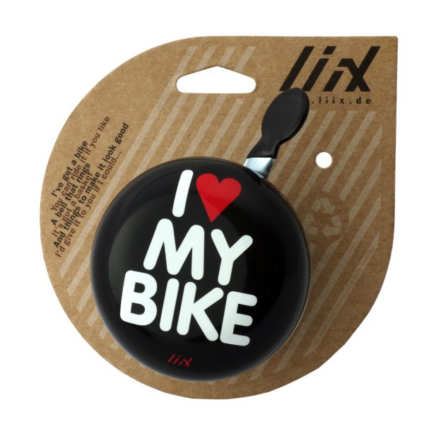 Stylowy dzwonek w rozmiarze XXL z klasycznym napisem "I Love My Bike". Jego dwutonowy dźwięk "ding dong" z wdziękiem oznajmi Twoją obecność i nikt już nie stanie Ci na drodze.